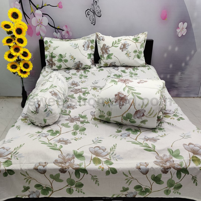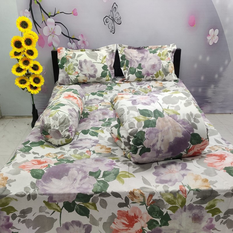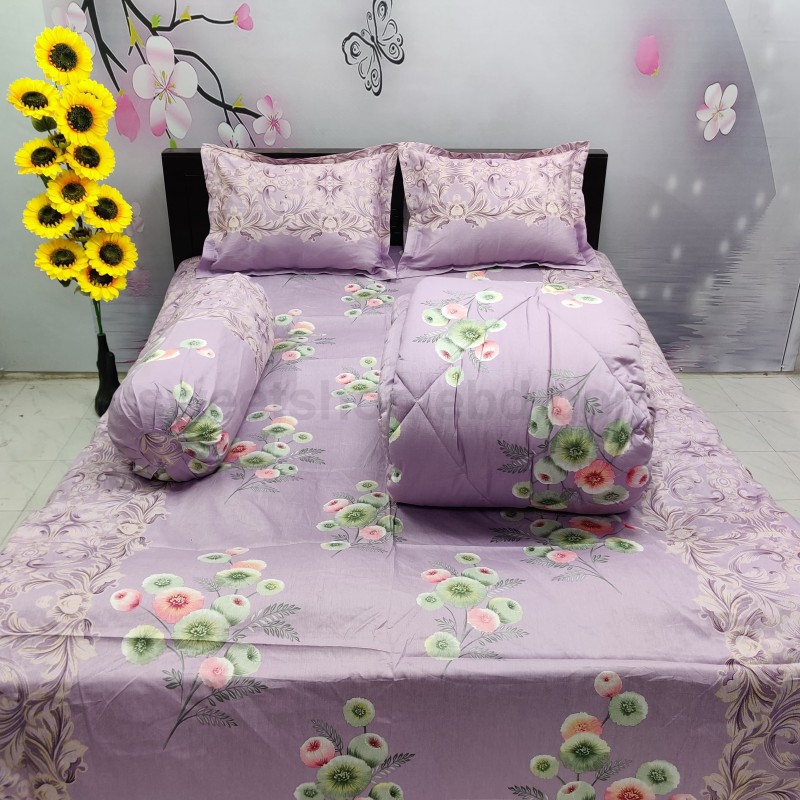 ৫ পিস সেট এর সাথে পাবেন ১০ আউন্স ১ টি কম্ফর্টার ১ টি বিছানার চাদর২ টি বালিশের কাভার১ টি কোলবালিশ এর কাভারকম্ফর্টার সাইজ ৭/৭.৫ ফিটবিছানার চাদর সাইজ ৭.৫/ ৮ ফিট