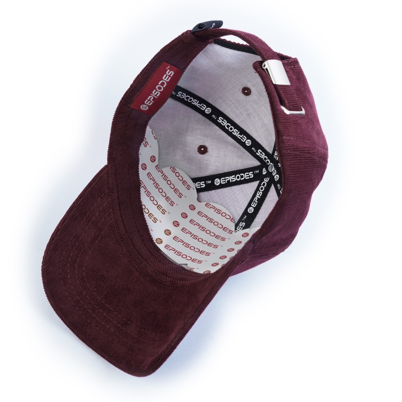 Introducing Episodes Burgundy Corduroy Cap, a stylish and sophisticated addition to your everyday wardrobe. Crafted from luxurious burgundy corduroy fabric, this high-quality cap combines elegance with a casual vibe. The intricately embroidered Episodes logo on the front adds a unique touch of personality and flair.